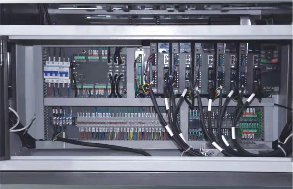 8、電氣系統(tǒng):整機(jī)采用全伺服運(yùn)動(dòng)控制,各種電氣元件、檢測開關(guān)均采用日本、臺(tái)灣、法國、德國等公司產(chǎn)品。